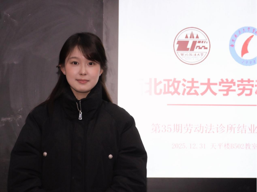 刘译鸿:回顾这一学期的学习,点点滴滴仍历历在目。无论是聆听老师们干货满满的专题分享,在值班中感受真实仲裁的实务风采,还是在招聘会、宣讲会上为同学们传递法律知识,亦或是认真准备与精彩呈现模拟仲裁,每一段经历都让我收获颇丰。这段时光里,我不仅积累了丰富的专业知识与宝贵的实践经验,更收获了与同学们并肩求索的真挚情谊,实现了自我的成长与进步。感谢老师们给予我加入劳动法诊所的机会,感谢每一位授课老师的倾囊相授,感谢仲裁委提供的实践机会,也感谢同学们一路的陪伴与帮助。第35期劳动法诊所于教师节正式启幕,又在2025年的跨年夜圆满结业,这份珍贵而浪漫的缘分值得永远铭记。今晚的结业不是终点,而是我们与2026年一同奔赴的崭新起点。最后,衷心祝愿老师们工作顺利、桃李芬芳,同学们期末顺利、前程似锦!