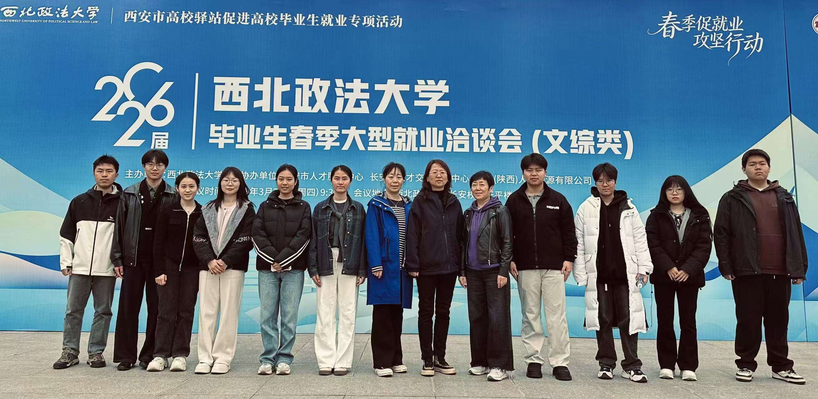 春风和煦,春光正好。2026年3月26日,我校2026届毕业生春季大型就业洽谈会(文综类)在长安校区天平广场如期举行。第36期劳动法诊所的10名学员在诊所负责人高瑾老师和劳动与社会保障法教研室的陈静媛老师、张琳老师的带领下,面向应届毕业生开展劳动法律咨询服务。