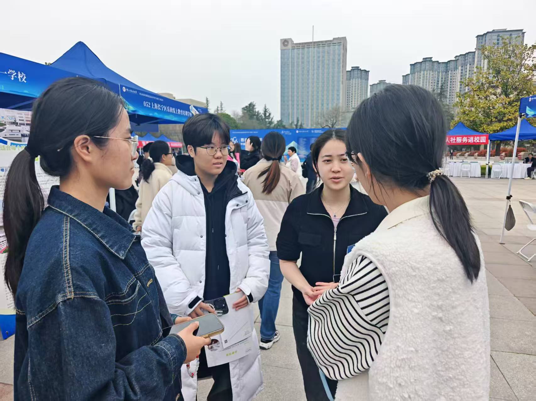 招聘会现场气氛热烈,不少企业展位前排起长队,毕业生们怀揣对未来的美好期许,纷纷投递出精心准备的简历,积极寻找心仪的工作岗位。
